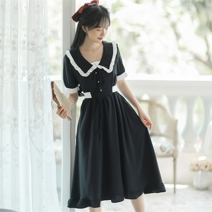 ワンピース レトロワンピース レディース 6色 S-XL 半袖 Aライン 無地 クラシック 韓国 ファッション コーデ おすすめ カジュアル きれいめ 大きいサイズ 人気 ゆったり 20代 30代 40代 50代