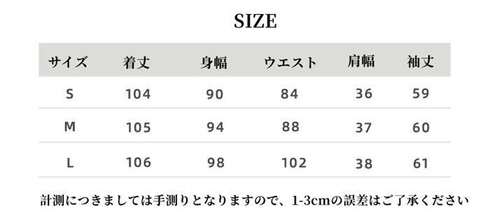 S:着丈104 身幅90 ウエスト84 肩幅36 袖丈59