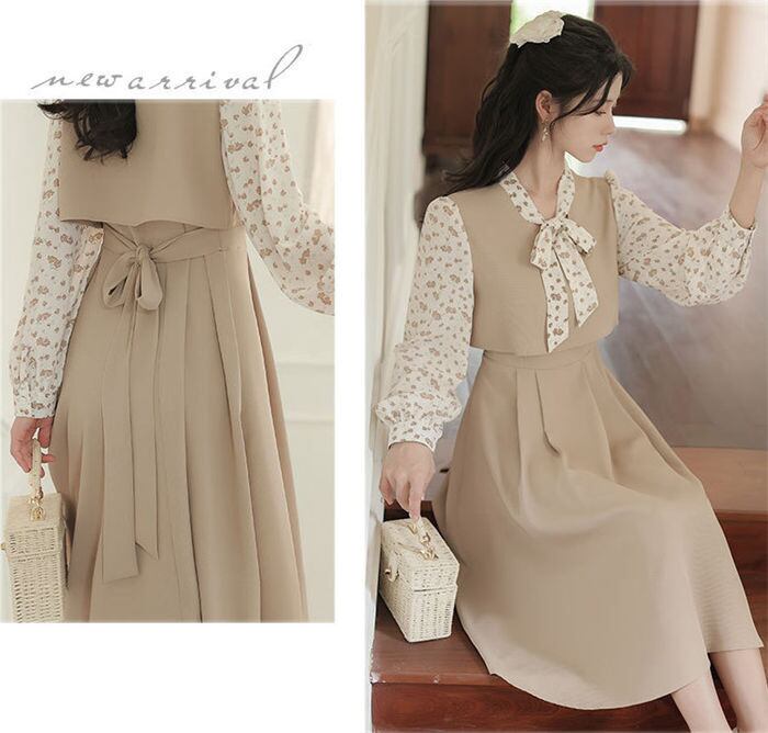 ワンピース レトロワンピース レディース S-L 長袖 レトロ 韓国 カジュアル 7842