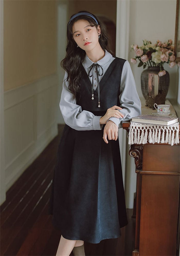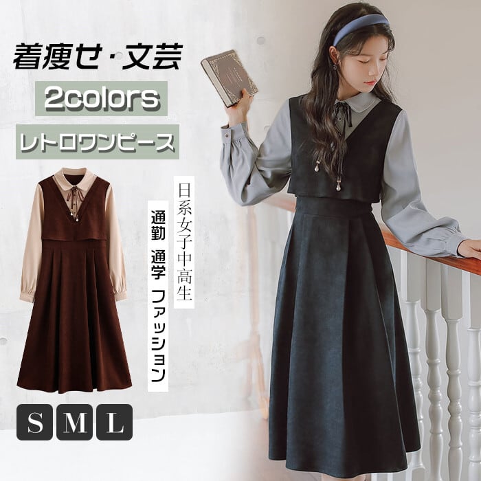 ワンピース レトロワンピース レディース 2色 S-L 長袖 レトロ 韓国 カジュアル 韓国 ファッション コーデ おすすめ カジュアル きれいめ 大きいサイズ 人気 ゆったり 20代 30代 40代 50代