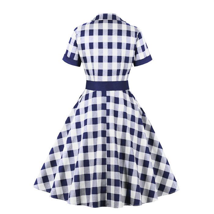 ワンピース レトロワンピース レディース 4色 S-2XL 半袖 パーティードレス Aライン チェック柄 7847