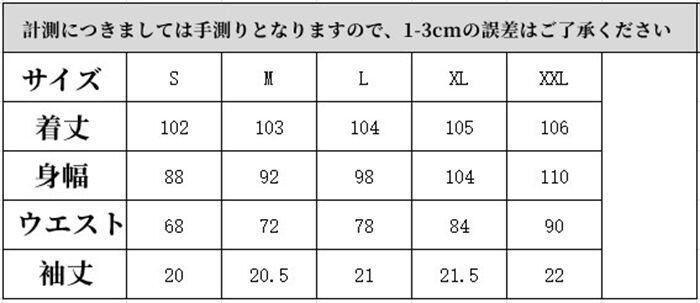S:着丈102 身幅88 ウエスト68 肩幅37 袖丈20