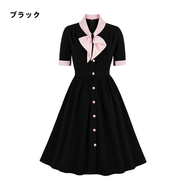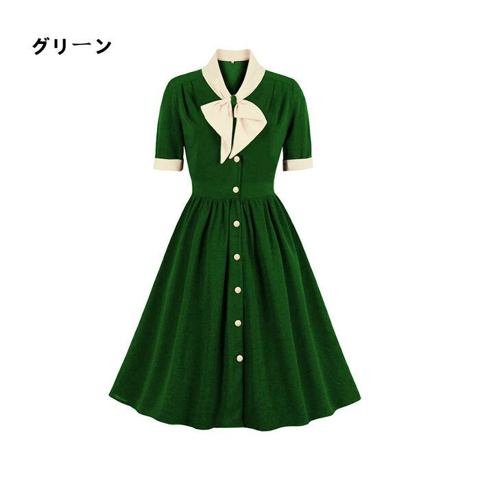 ワンピース レトロワンピース レディース 3色 S-2XL 半袖 パーティードレス Aライン 無地 7848