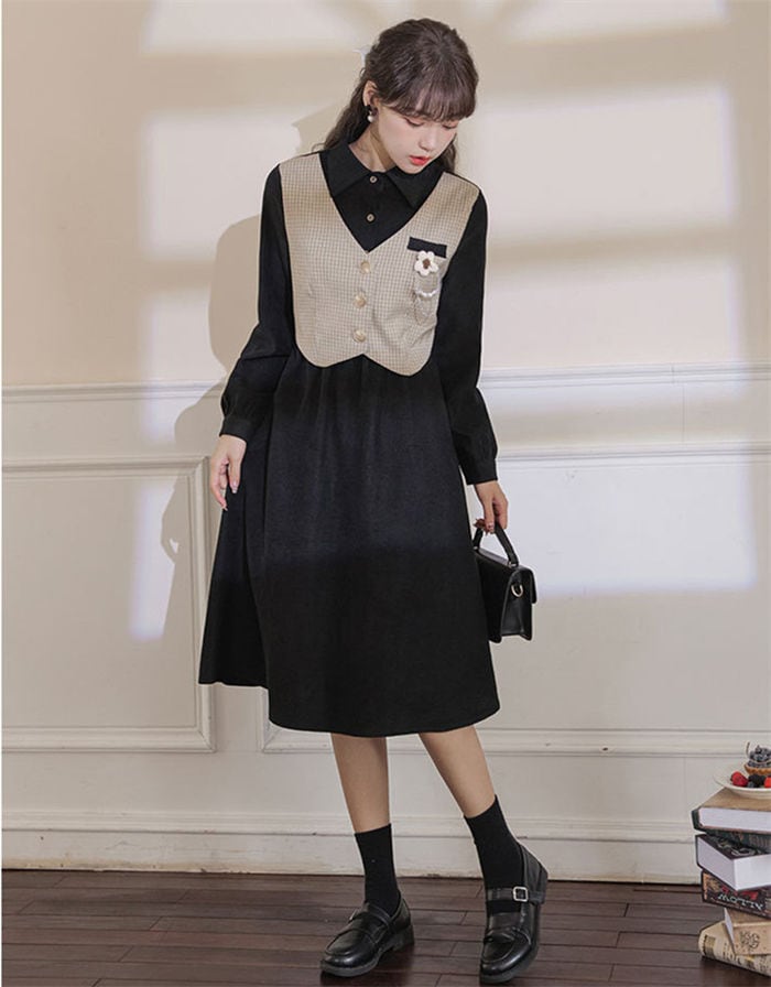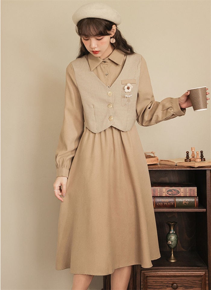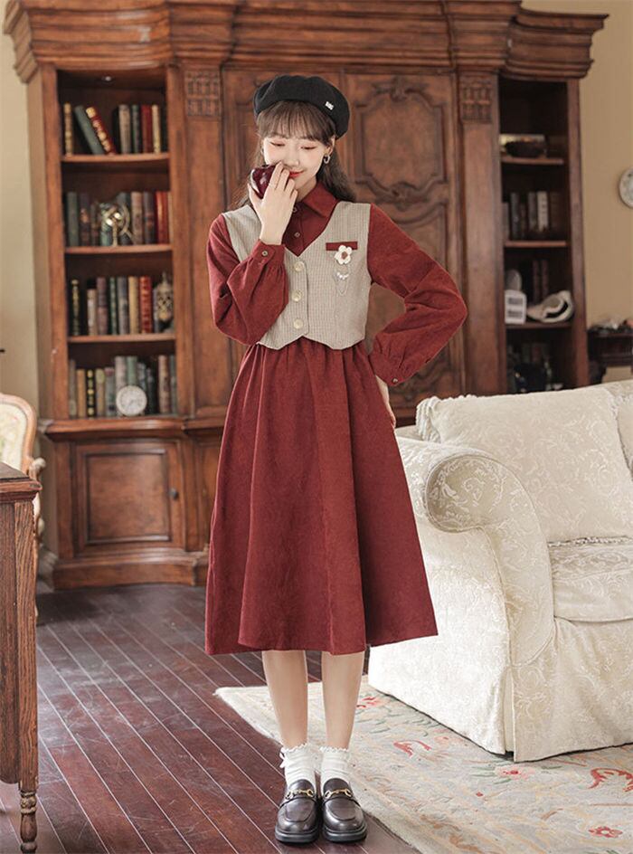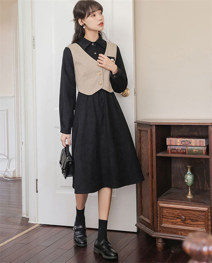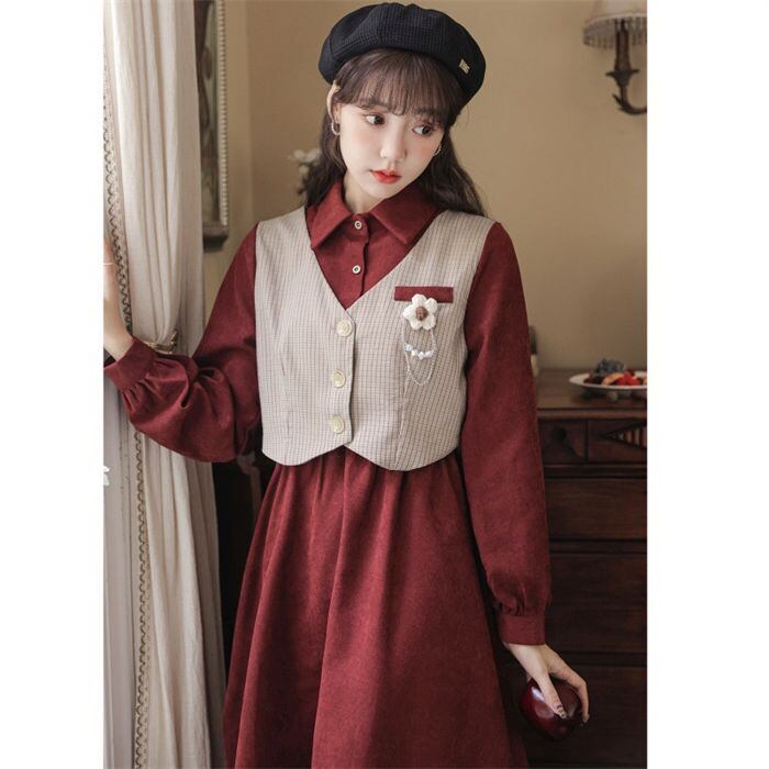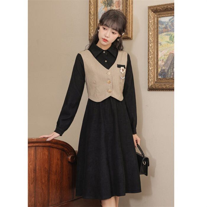 ワンピース レトロワンピース レディース S-L 3色 長袖 ロング丈 かわいい 衣装 コスプレ 韓国 ファッション コーデ おすすめ カジュアル きれいめ 大きいサイズ 人気 ゆったり 20代 30代 40代 50代