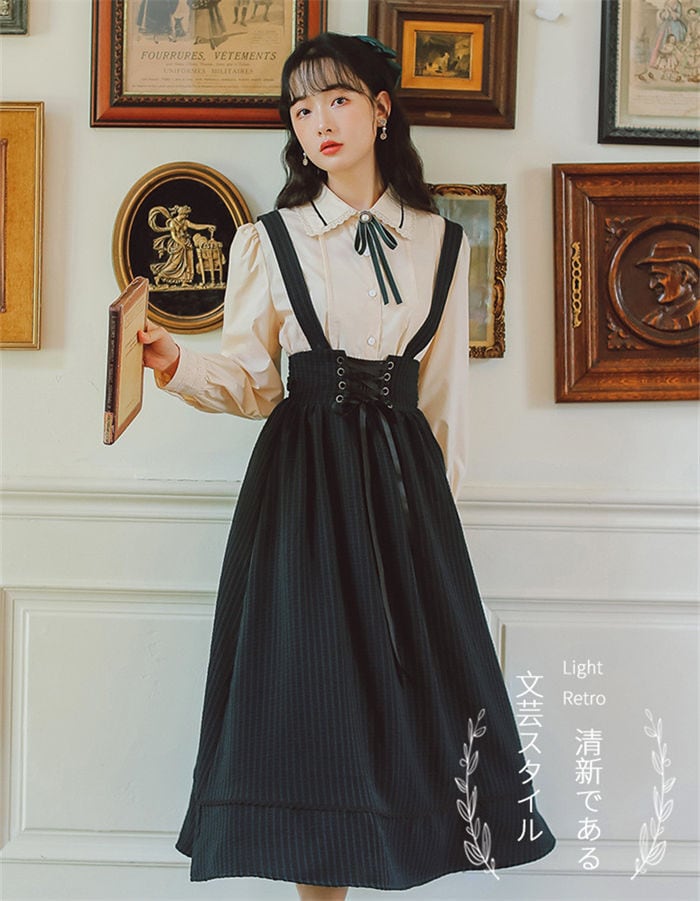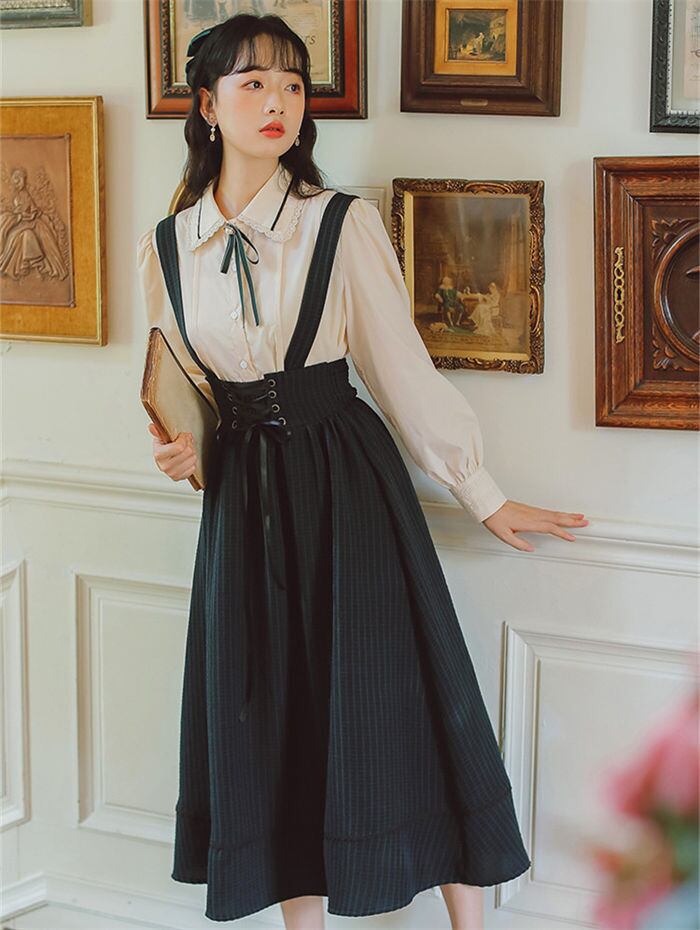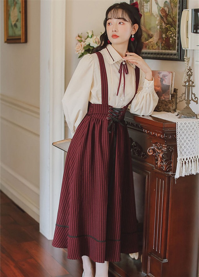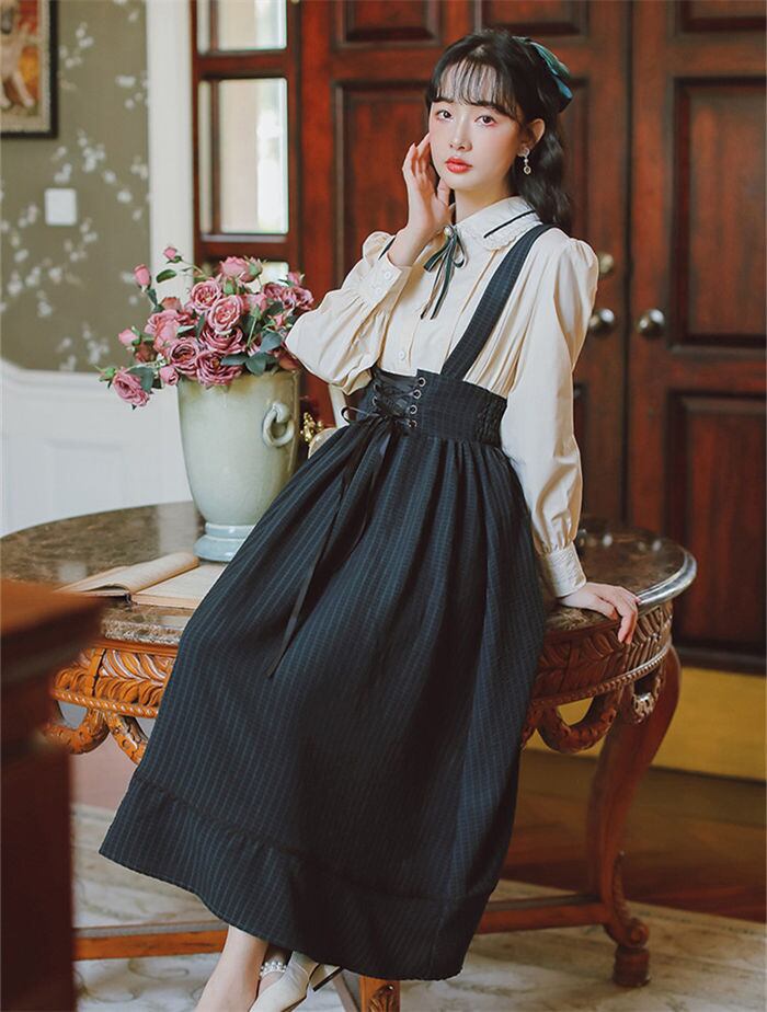 ワンピース レトロワンピース レディース S-XL 2色 2点セット 長袖 ロング丈 かわいい 衣装 コスプレ 韓国 ファッション コーデ おすすめ カジュアル きれいめ 大きいサイズ 人気 ゆったり 20代 30代 40代 50代