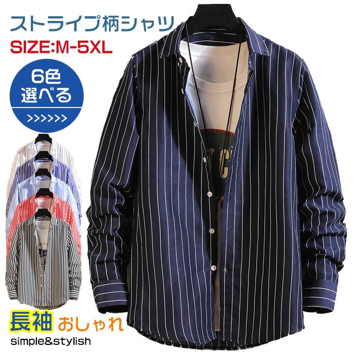 シャツ 長袖シャツ ストライプ メンズ 6色 M-5XL カジュアルシャツ 大きいサイズ 韓国 ファッション コーデ おすすめ カジュアル きれいめ 大きいサイズ 人気 ゆったり 20代 30代 40代 50代