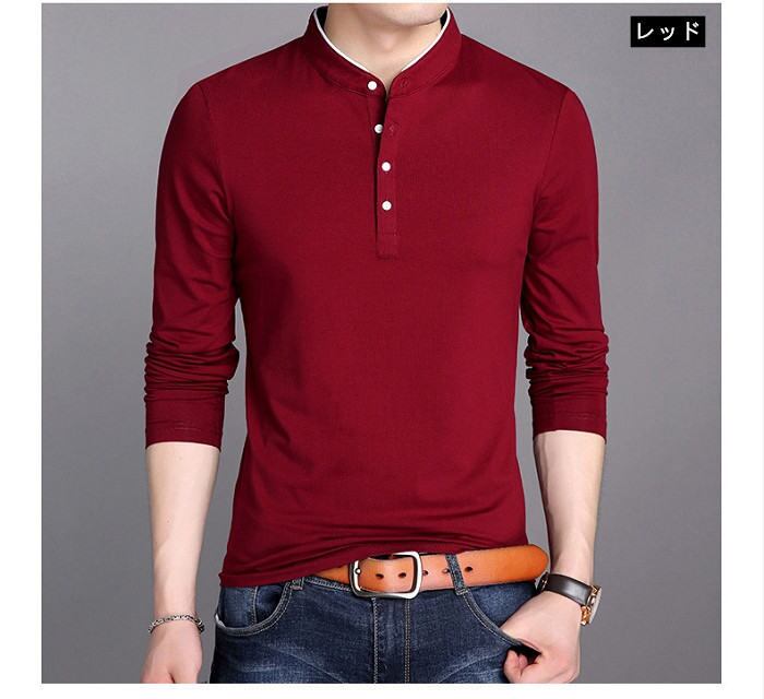 長袖tシャツ カットソー メンズ 3色 ノーカラー 通気性抜群 ストレッチ カジュアル 大きいサイズ 7952
