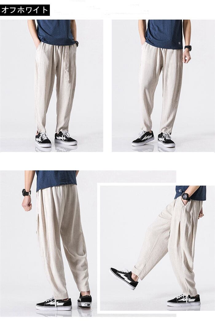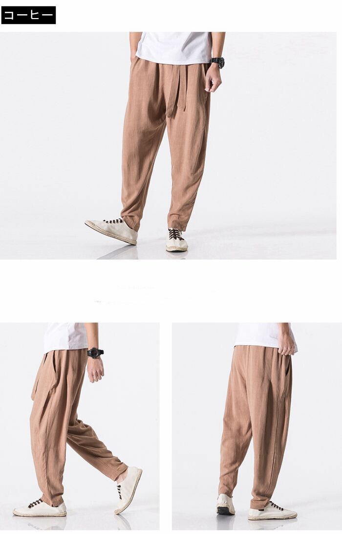 サルエルパンツ ロングパンツ 綿麻 無地 メンズ 5色 M-5XL カジュアル ゆったり 薄手 大きいサイズ 7962