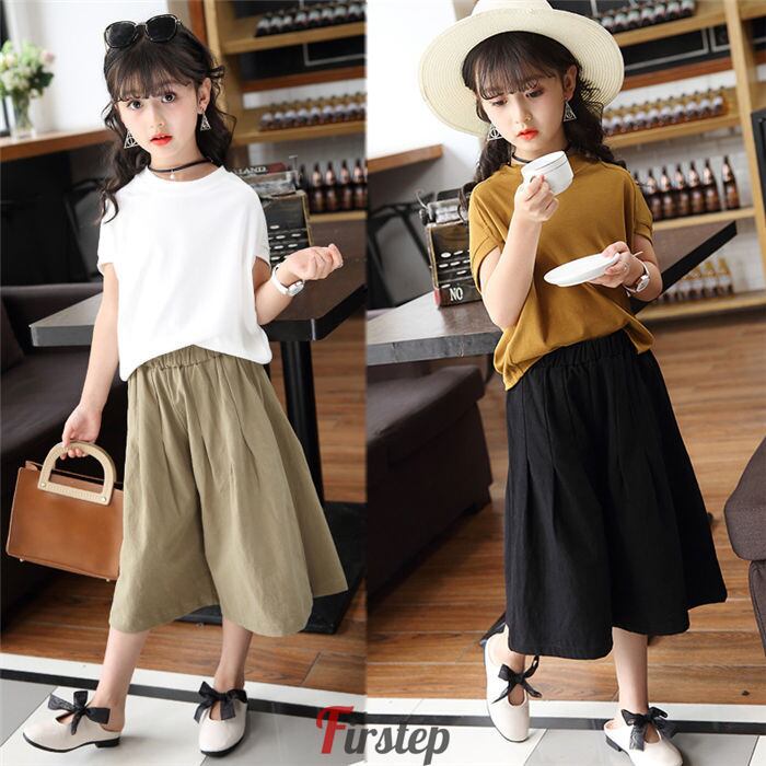 セットアップ 上下セット シャツ ワイドパンツ 女の子 キッズ 3type 110-170cm 小学生 2点セット 子供服 かわいい 7977