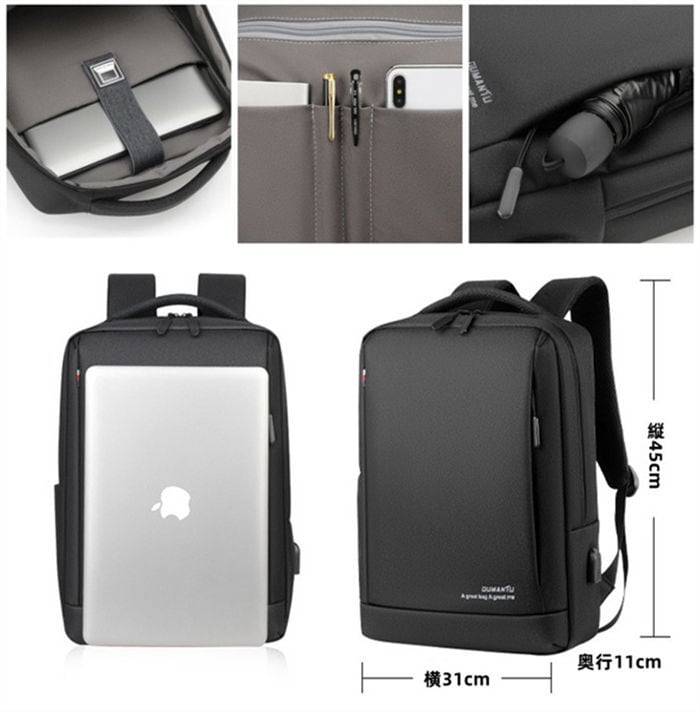 ★特徴:通勤、通学、など大容量で使いやすいバッグ!USBポート付き