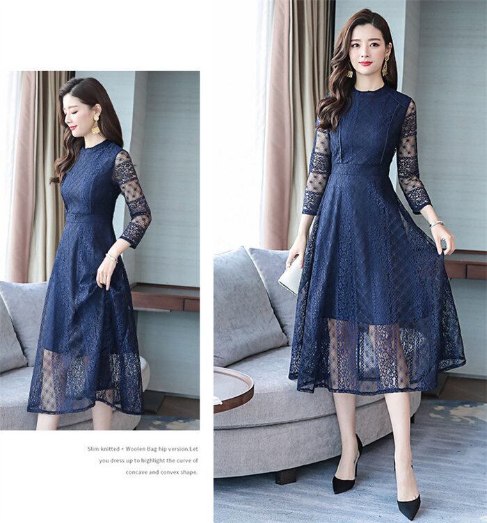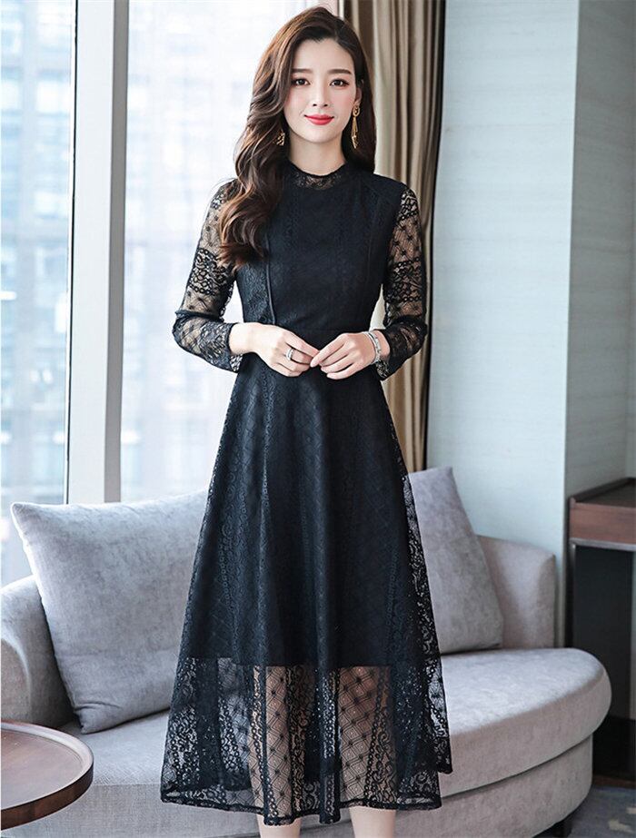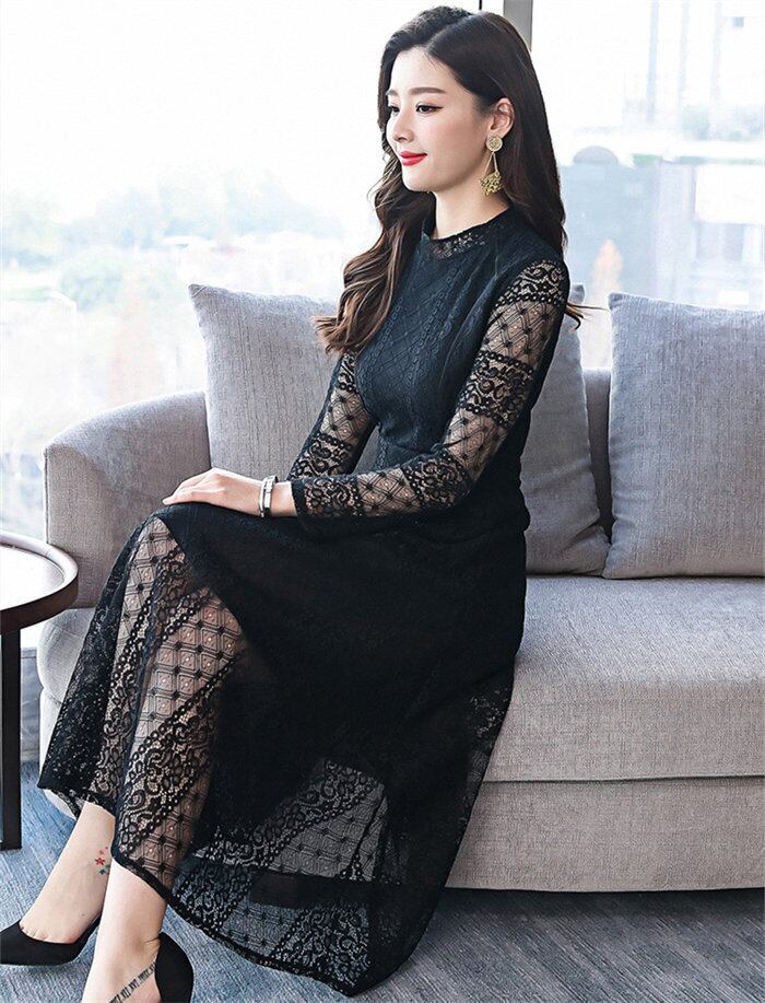 ワンピース レース ロング丈 レディース 2色 S-3XL 長袖 フォーマル 結婚式 きれいめ 韓国 ファッション コーデ おすすめ カジュアル きれいめ 大きいサイズ 人気 ゆったり 20代 30代 40代 50代