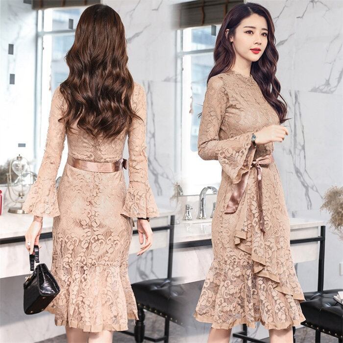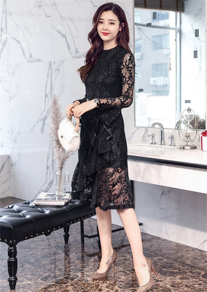 ワンピース 総レース レディース 2色 S-2XL 長袖 パーティードレス フォーマル 結婚式 きれいめ 韓国 ファッション コーデ おすすめ カジュアル きれいめ 大きいサイズ 人気 ゆったり 20代 30代 40代 50代