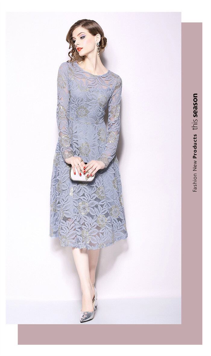 ワンピース 総レース 花柄 レディース 2色 M-3XL 長袖 Aライン パーティードレス フォーマル 結婚式 きれいめ 韓国 ファッション コーデ おすすめ カジュアル きれいめ 大きいサイズ 人気 ゆったり 20代 30代 40代 50代