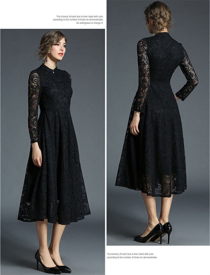 パーティードレス ワンピース 長袖 レディース 2色 S-5XL 総レース きれいめ Aライン 結婚式 二次会 パーティー 韓国 ファッション コーデ おすすめ カジュアル きれいめ 大きいサイズ 人気 ゆったり 20代 30代 40代 50代