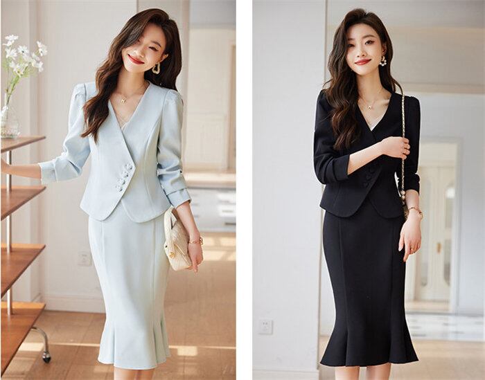 セットアップ スーツ レディース 7分袖 3色 S-3XL マーメイドスカート フォーマル ビジネス 入学式 卒業式 韓国 ファッション コーデ おすすめ カジュアル きれいめ 大きいサイズ 人気 ゆったり 20代 30代 40代 50代