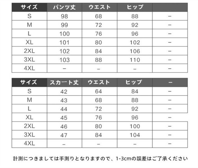 サイズ表の実寸法は商品によって1-3cm程度の誤差がある場合がございます。