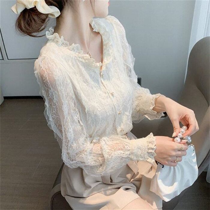 ブラウス シャツ レディース 長袖 ホワイト S-3XL 総レース パフスリーブ フォーマル 大人 おしゃれ 韓国 ファッション コーデ おすすめ カジュアル きれいめ 大きいサイズ 人気 ゆったり 20代 30代 40代 50代
