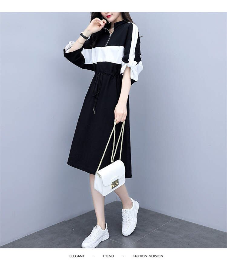 ワンピース Aライン 七分袖 レディース 黒 S-3XL 春秋 カジュアル おしゃれ 無地 韓国 ファッション コーデ おすすめ カジュアル きれいめ 大きいサイズ 人気 ゆったり 20代 30代 40代 50代