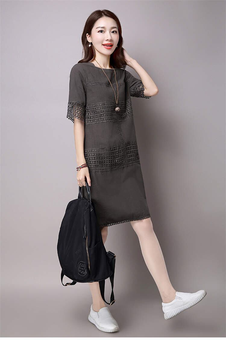 ワンピース 半袖 おしゃれ レディース 2色 S-3L無地 リネン シンプル 上品 きれいめ 8038