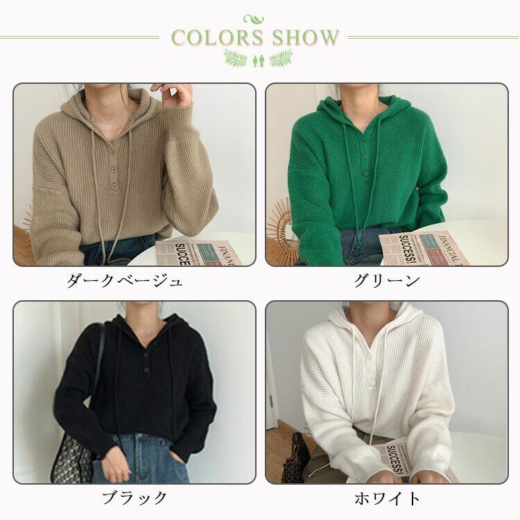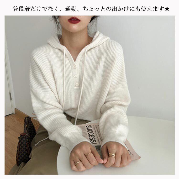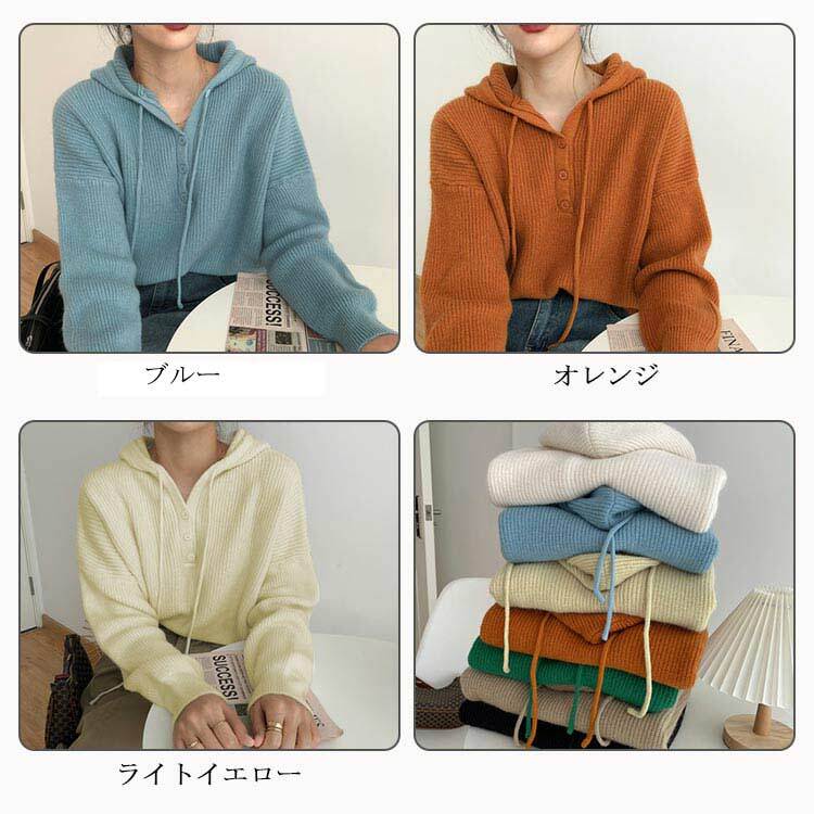 ニットパーカー セーター レディース 7色 フリーサイズ フード付き プルオーバー ゆったり 長袖 カジュアル 秋冬 韓国 ファッション コーデ おすすめ カジュアル きれいめ 大きいサイズ 人気 ゆったり 20代 30代 40代 50代