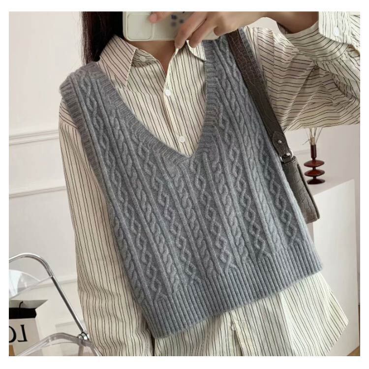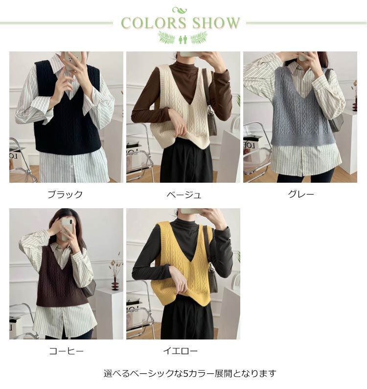 ニットベスト Vネック ベスト レディース 5色 フリーサイズ ケーブル編み 無地 もこもこ おしゃれ ゆったり 春秋 韓国 ファッション コーデ おすすめ カジュアル きれいめ 大きいサイズ 人気 ゆったり 20代 30代 40代 50代