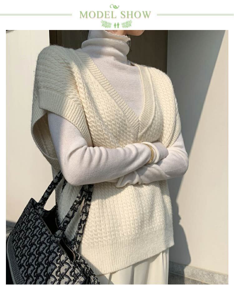 ベスト ニットベスト Vネック レディース オフホワイト フリーサイズ ゆったり おしゃれ 大きいサイズ 春秋 韓国 ファッション コーデ おすすめ カジュアル きれいめ 大きいサイズ 人気 ゆったり 20代 30代 40代 50代