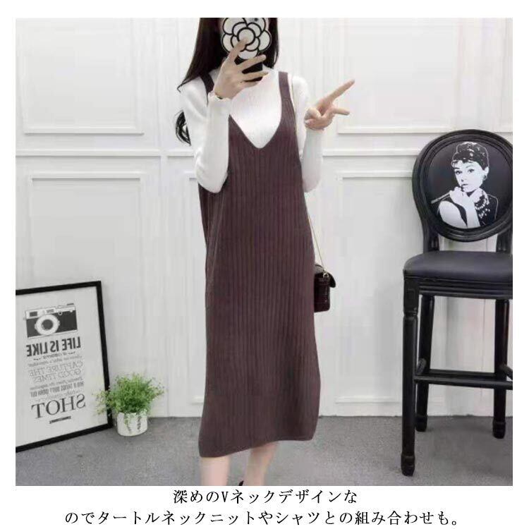 ワンピース ニットワンピース レディース 4色 S-2XL ロング丈 キャミソールワンピース ゆったり 秋冬 8068