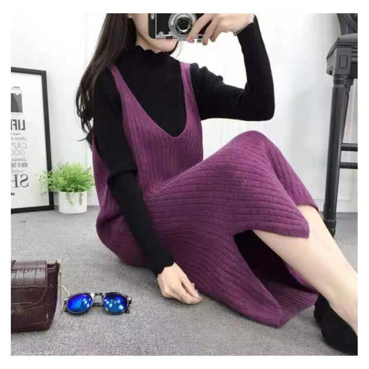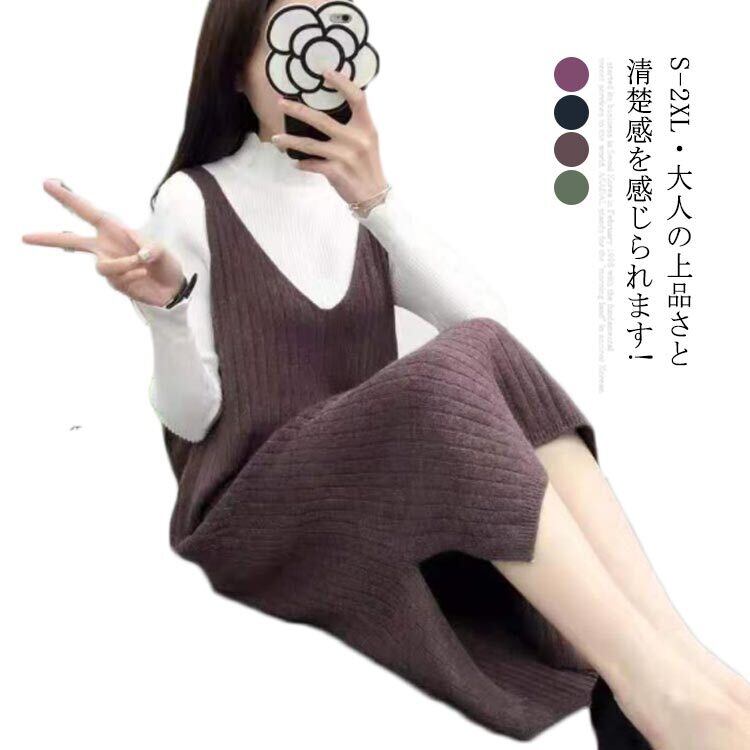ワンピース ニットワンピース レディース 4色 S-2XL ロング丈 キャミソールワンピース ゆったり 秋冬 韓国 ファッション コーデ おすすめ カジュアル きれいめ 大きいサイズ 人気 ゆったり 20代 30代 40代 50代