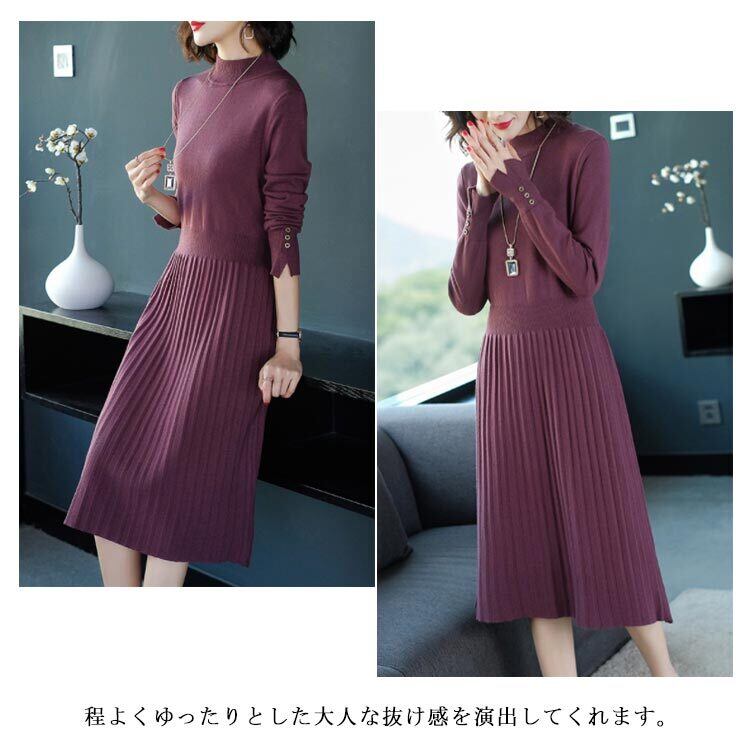 ニットワンピース ワンピース レディース 4色 フリーサイズ 長袖 無地 ラウンドネック Aライン ロング丈 秋冬 カジュアル 韓国 ファッション コーデ おすすめ カジュアル きれいめ 大きいサイズ 人気 ゆったり 20代 30代 40代 50代