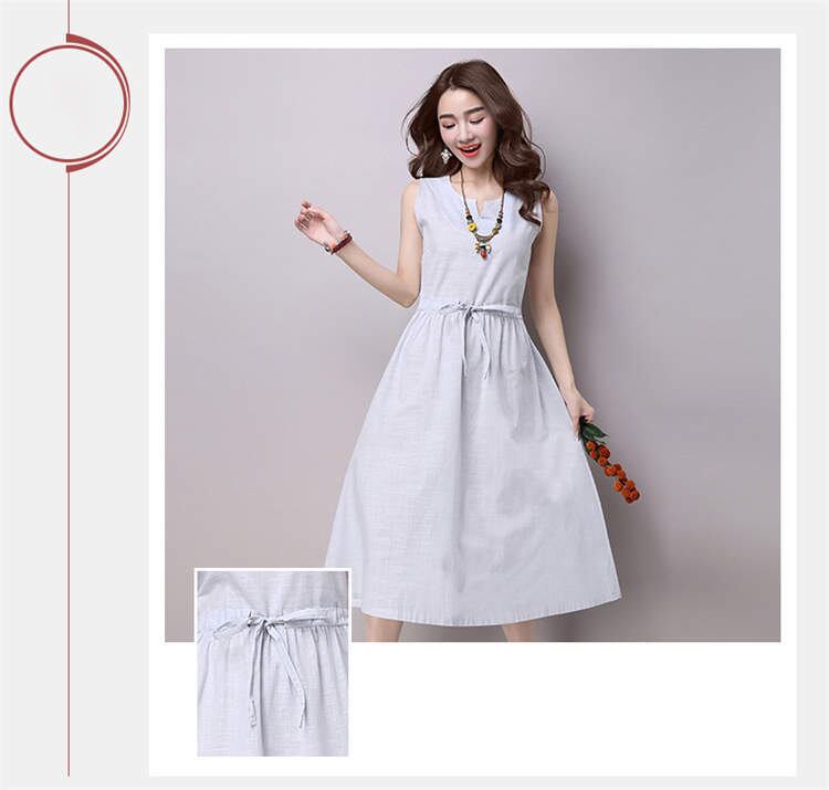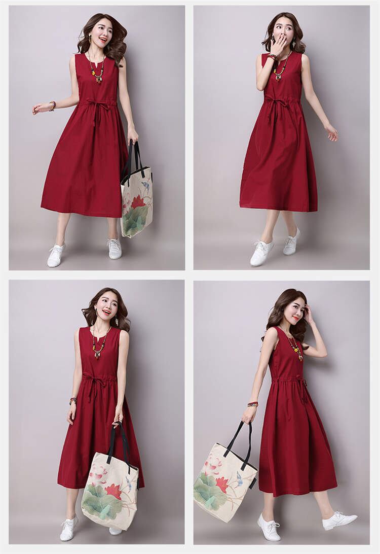 ワンピース リネン ノースリーブワンピース レディース 4色 S-2XL 無地 フォーマル Aライン 上品 春夏 8096