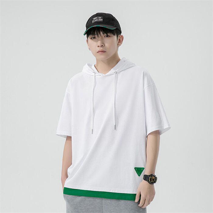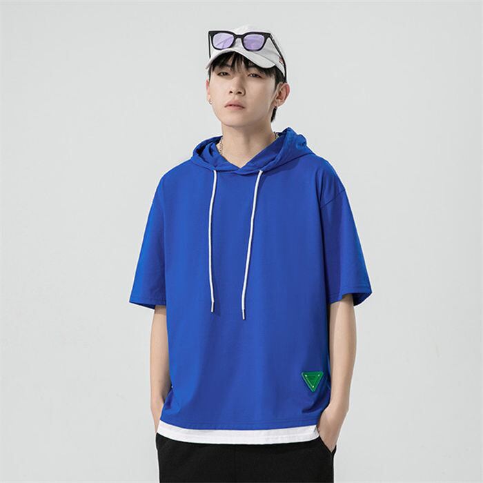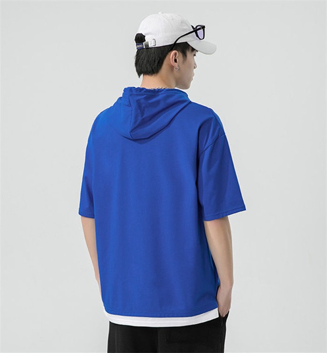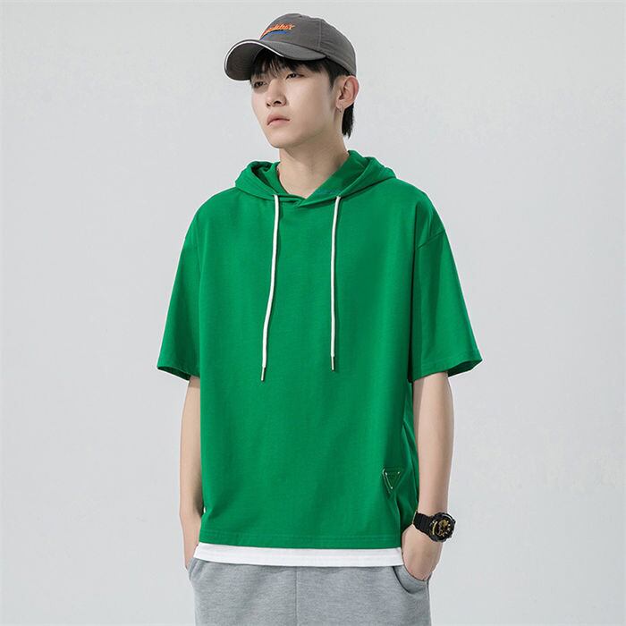 半袖パーカー フード付きtシャツ メンズ 5色 M-3XL プルオーバー カジュアル 無地 薄手 半袖 23zm56