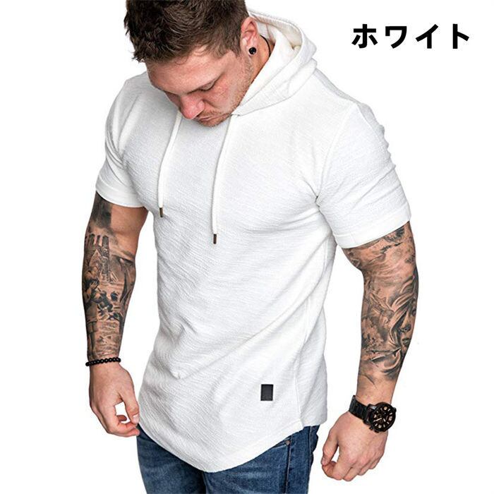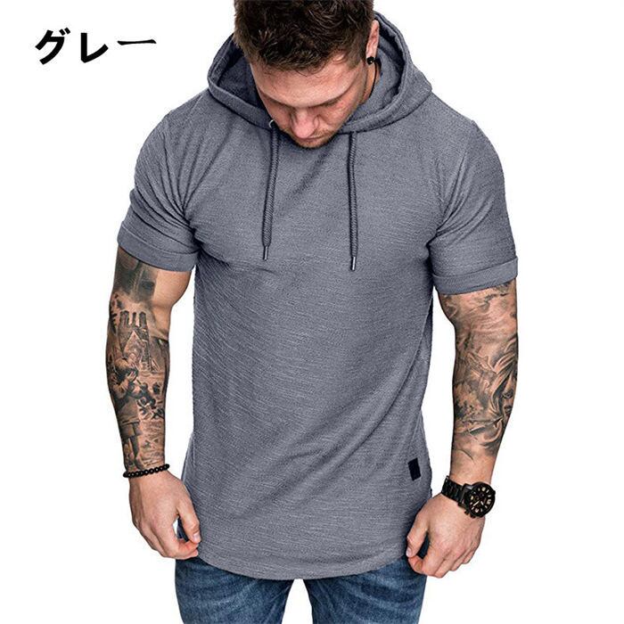 半袖パーカー フード付きtシャツ メンズ 4色 S-2XL プルオーバー カジュアル 無地 薄手 半袖 23zm58