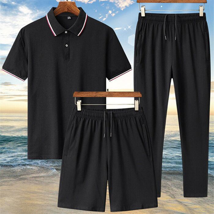★特徴:ポロシャツ、五分袖パンツ、ロングパンツの3点セット。