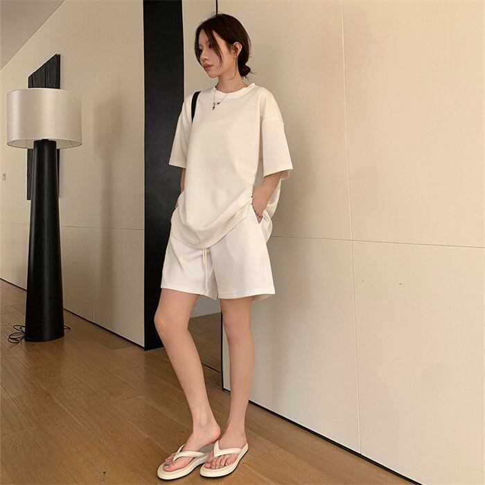 下半身には、ハーフパンツが付属しています。これらのパンツもカジュアルでありながら、動きやすさと快適さを重視しています。膝上の丈が特徴で、暖かい季節に涼しげな装いを楽しむことができます。
