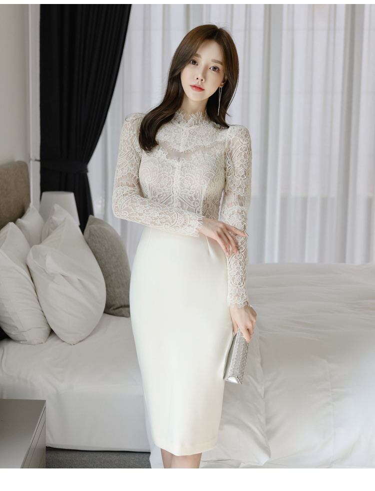 ワンピース ドレス 長袖 レディース ホワイト S-LL 透け感 レース ひざ丈 大人 タイト セクシー エレガント 結婚式 クラブ 韓国 ファッション コーデ おすすめ カジュアル きれいめ 大きいサイズ 人気 ゆったり 20代 30代 40代 50代