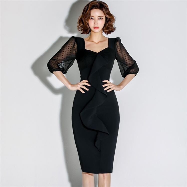 ワンピース 七分袖 レディース ブラック S-LL 透け感 タイト セクシー パーティードレス クラブ 上品 おしゃれ 韓国 ファッション コーデ おすすめ カジュアル きれいめ 大きいサイズ 人気 ゆったり 20代 30代 40代 50代