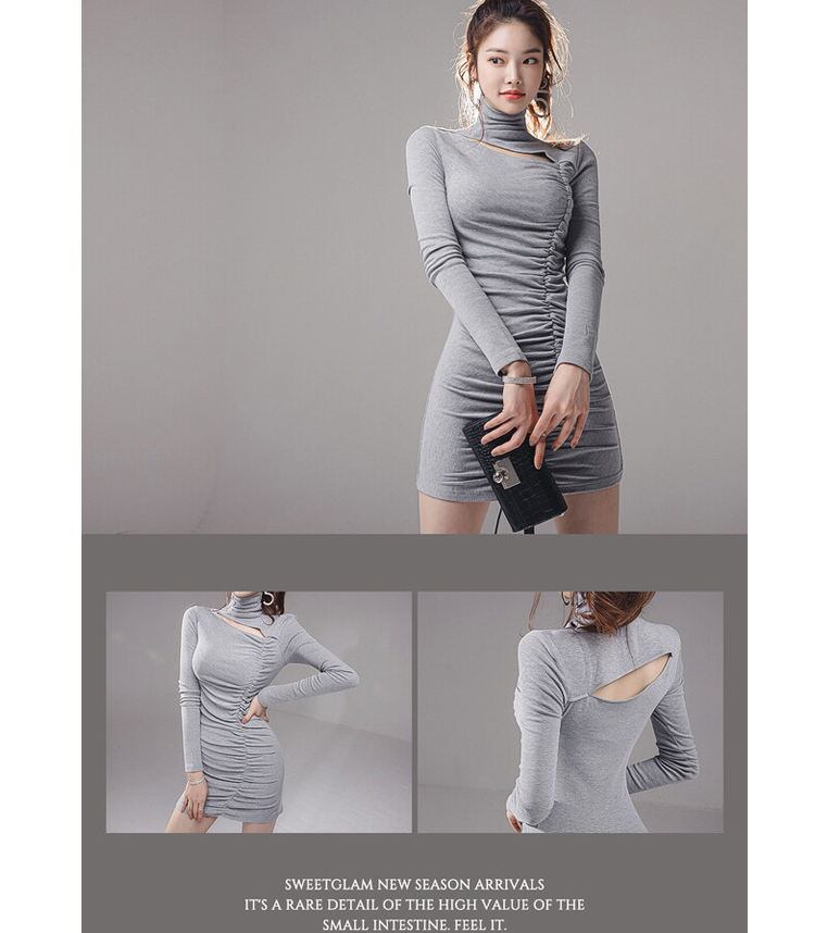 ワンピース 長袖 レディース グレー S-LL ハイネック タイト セクシー パーティードレス クラブ 上品 おしゃれ 韓国 ファッション コーデ おすすめ カジュアル きれいめ 大きいサイズ 人気 ゆったり 20代 30代 40代 50代