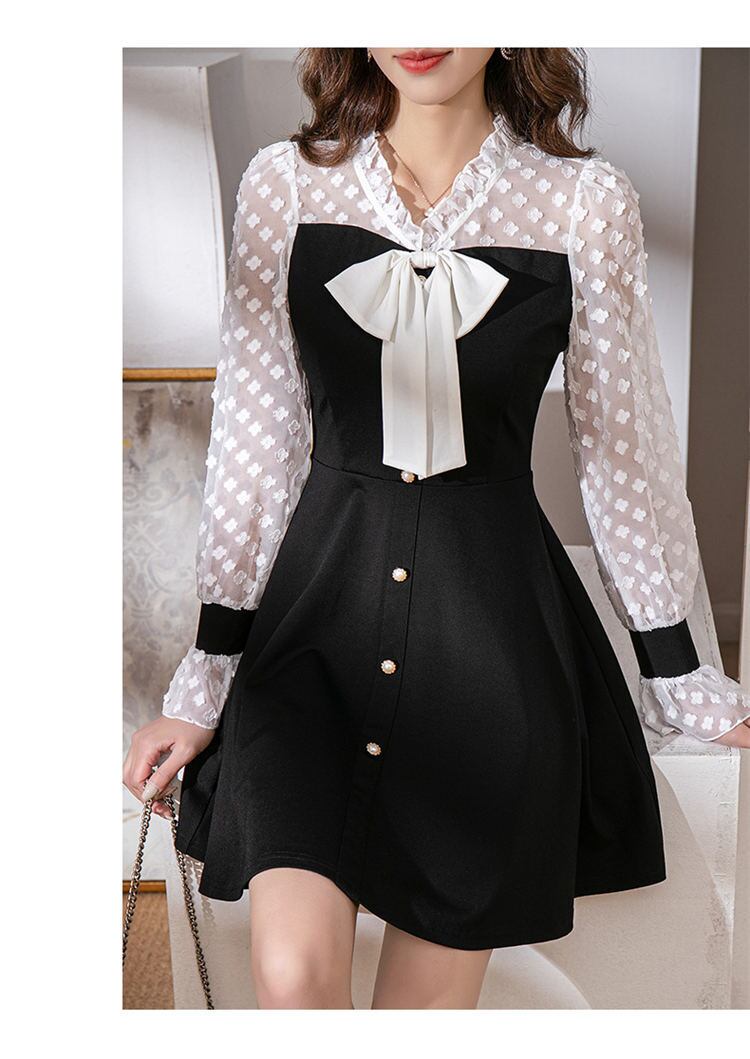 ワンピース 長袖 レディース ブラック S-LL ドット柄 レース ひざ丈 大人 フォーマル きれいめ 結婚式 パーティー 韓国 ファッション コーデ おすすめ カジュアル きれいめ 大きいサイズ 人気 ゆったり 20代 30代 40代 50代