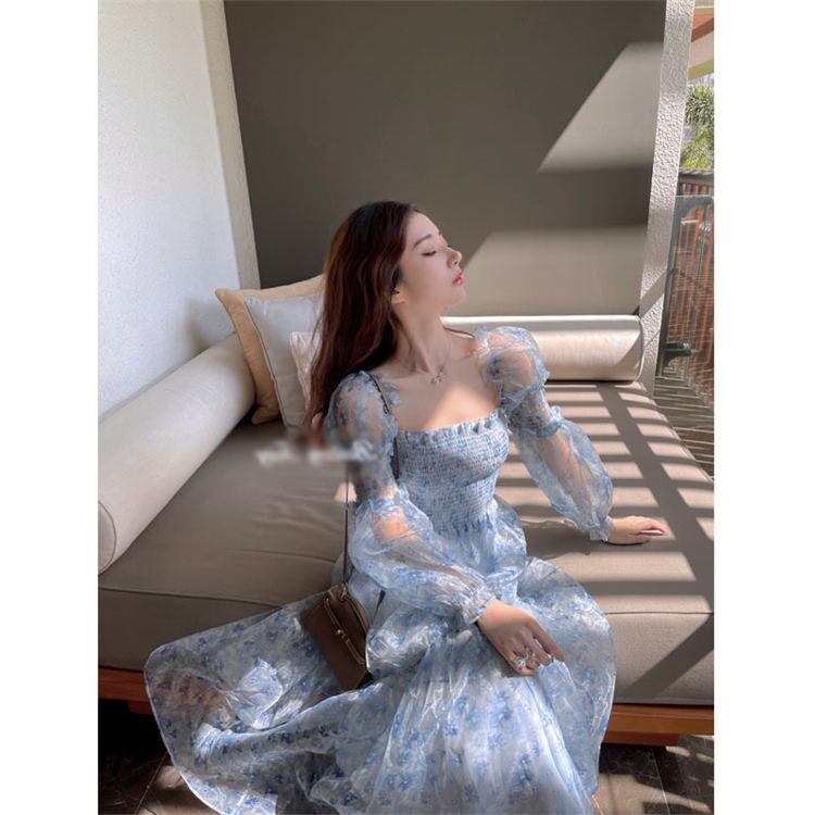ワンピース 長袖 レディース 2色 SS-M 花柄 ロング丈 上品 お嬢様 ティアードスカート おしゃれ 韓国 ファッション コーデ おすすめ カジュアル きれいめ 大きいサイズ 人気 ゆったり 20代 30代 40代 50代