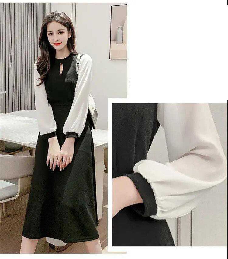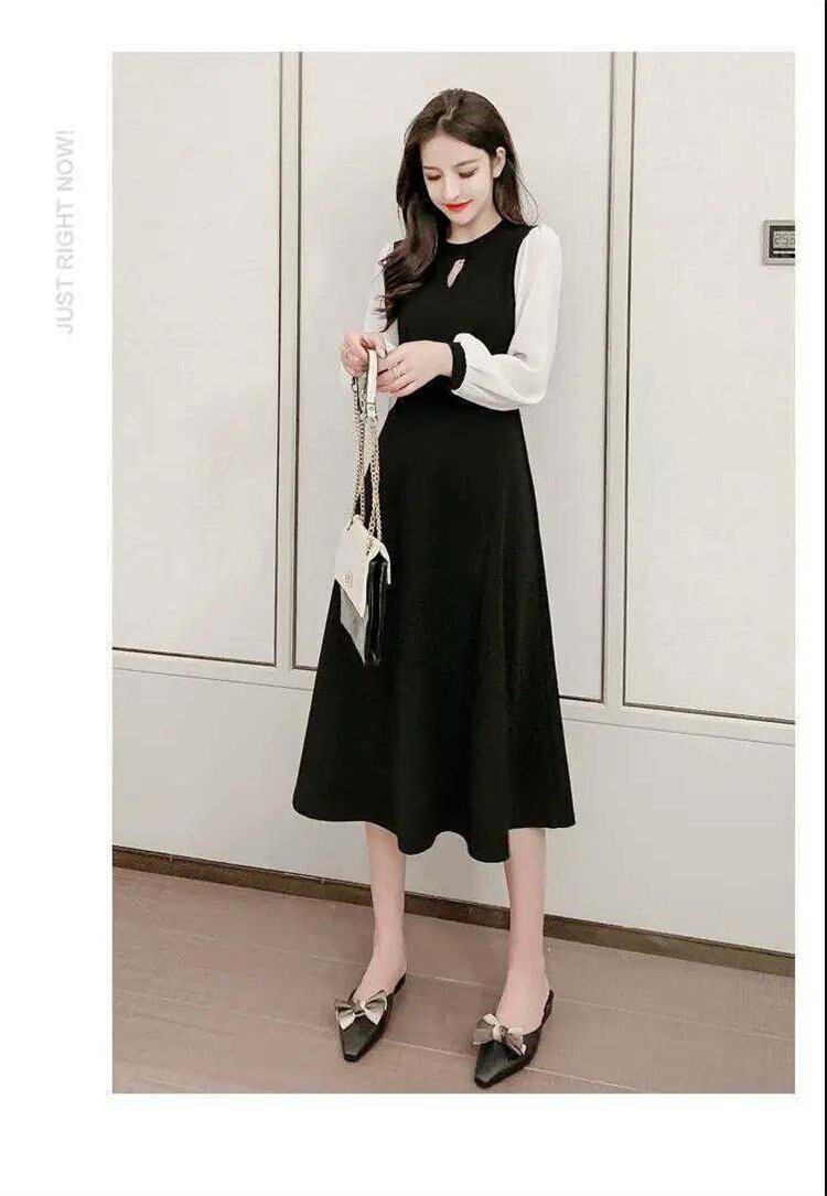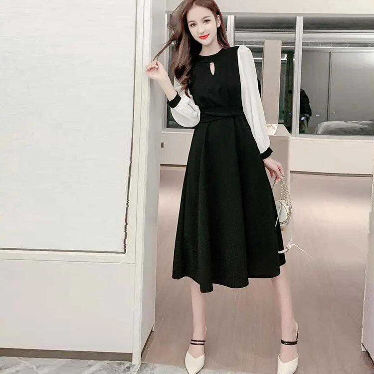 ワンピース 長袖 レディース ブラック M-4L 無地 Aライン ミモレ丈 上品 大人 お出かけ おしゃれ 春秋 韓国 ファッション コーデ おすすめ カジュアル きれいめ 大きいサイズ 人気 ゆったり 20代 30代 40代 50代