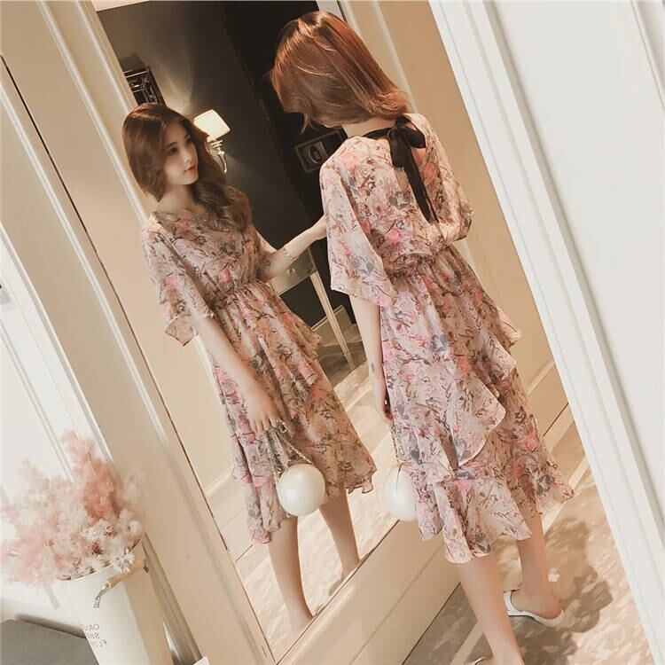 ワンピース 半袖 レディース 花柄 M-5L フレア Aライン ウエストゴム 大人 お出かけ おしゃれ 夏 韓国 ファッション コーデ おすすめ カジュアル きれいめ 大きいサイズ 人気 ゆったり 20代 30代 40代 50代