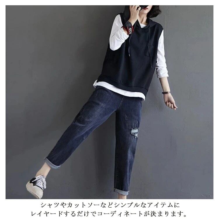 ベスト フード付き スウェットベスト レディース 3色 M-2XL カジュアル ゆったり プルオーバー 8138