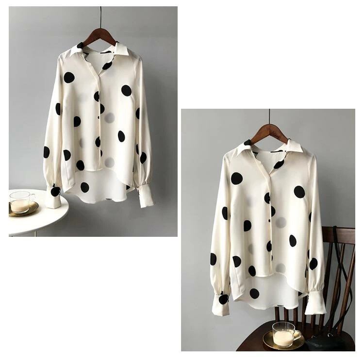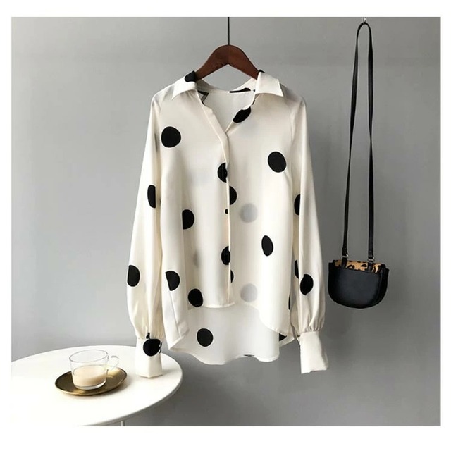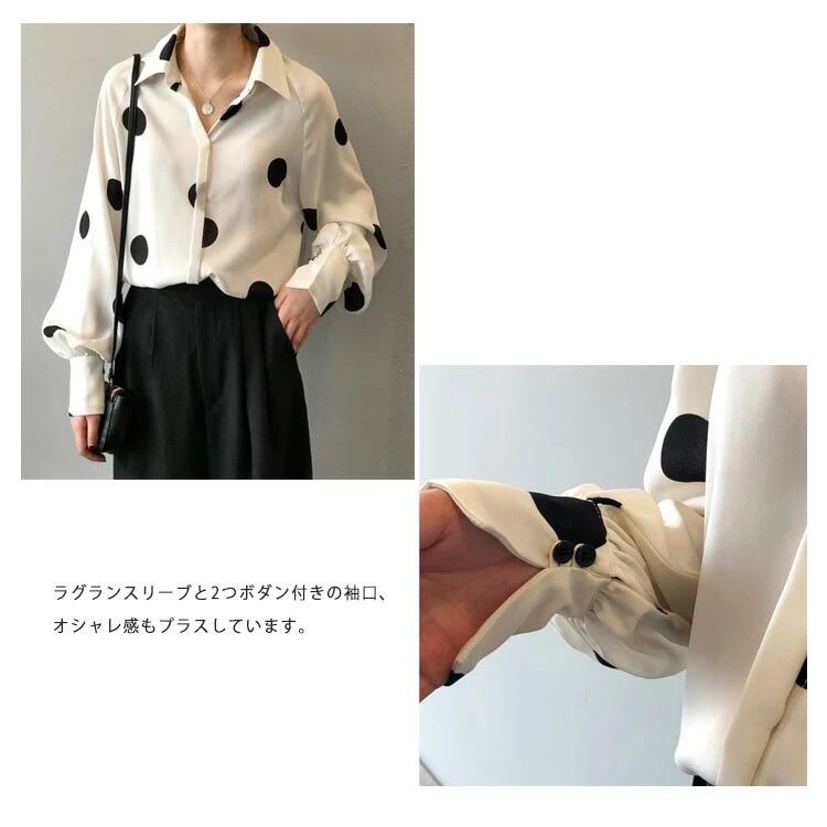 ブラウス シャツ レディース 2色 M-L ドット柄 水玉 シフォン 長袖 春秋 オフィス フォーマル 韓国 ファッション コーデ おすすめ カジュアル きれいめ 大きいサイズ 人気 ゆったり 20代 30代 40代 50代