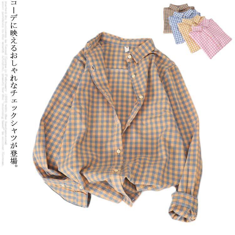 シャツ ブラウス レディース 4色 S-XL 長袖 チェック柄 チェックシャツ カジュアルシャツ おしゃれ 春秋 韓国 ファッション コーデ おすすめ カジュアル きれいめ 大きいサイズ 人気 ゆったり 20代 30代 40代 50代