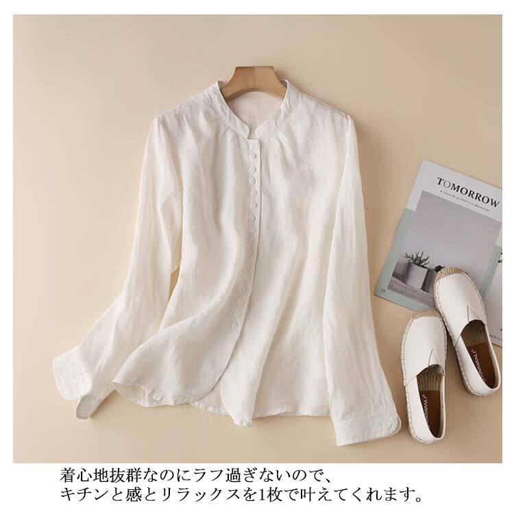 シャツ ブラウス レディース 3色 M-5XL 長袖 綿麻 リネンシャツ ノーカラー カジュアルシャツ おしゃれ 春夏 8162