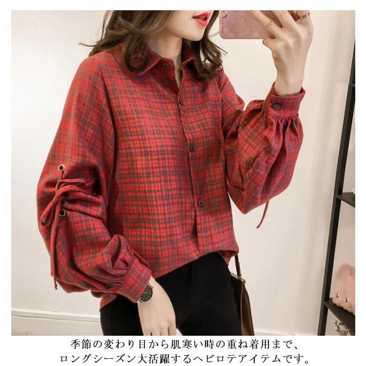 ブラウス シャツ レディース 2色 M-4XL 長袖 チェック柄 カジュアルシャツ バルーンスリーブ おしゃれ 韓国 ファッション コーデ おすすめ カジュアル きれいめ 大きいサイズ 人気 ゆったり 20代 30代 40代 50代