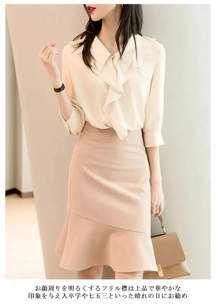 シャツ ブラウス レディース ベージュ M-2XL 七分袖 無地 きれいめ オフィス フォーマル おしゃれ 韓国 ファッション コーデ おすすめ カジュアル きれいめ 大きいサイズ 人気 ゆったり 20代 30代 40代 50代