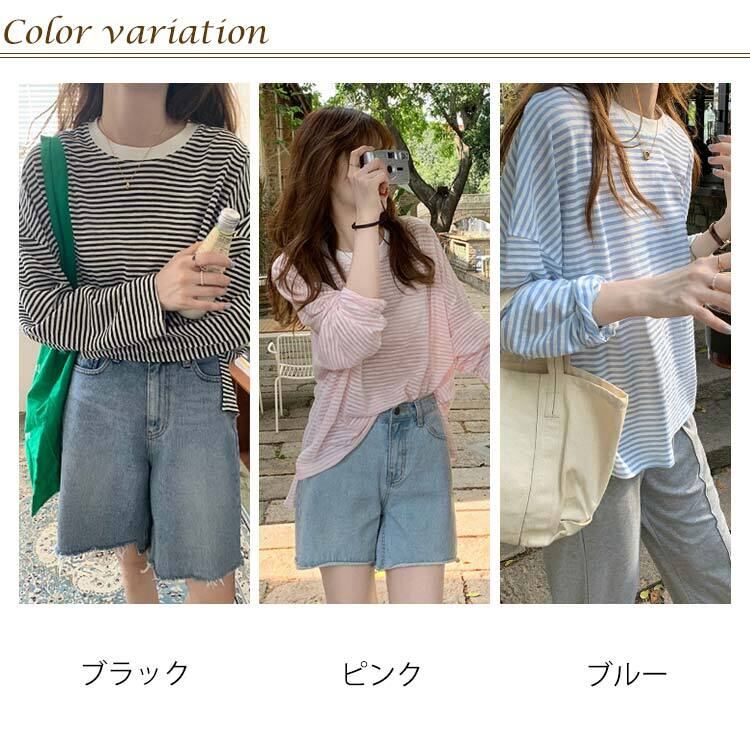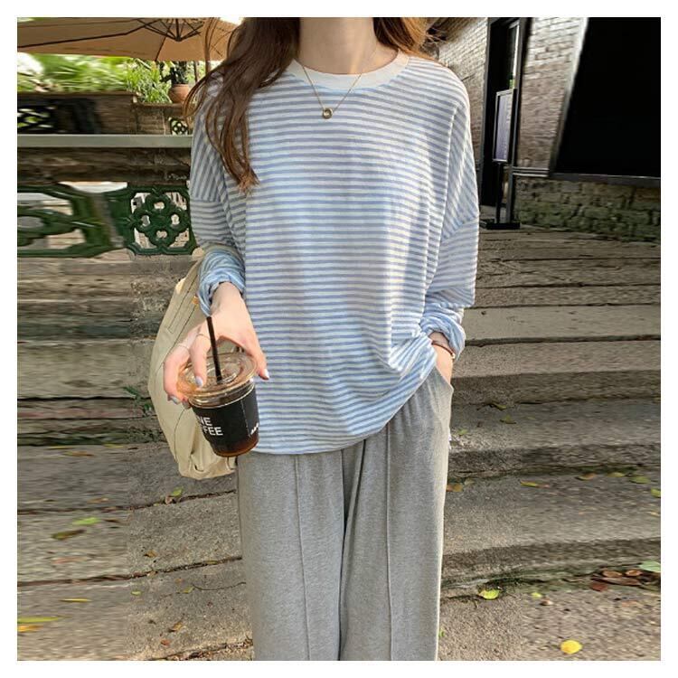 tシャツ 長袖 ロンt レディース 3色 M-XL ボーダー カットソー カジュアル おしゃれ 韓国 ファッション コーデ おすすめ カジュアル きれいめ 大きいサイズ 人気 ゆったり 20代 30代 40代 50代