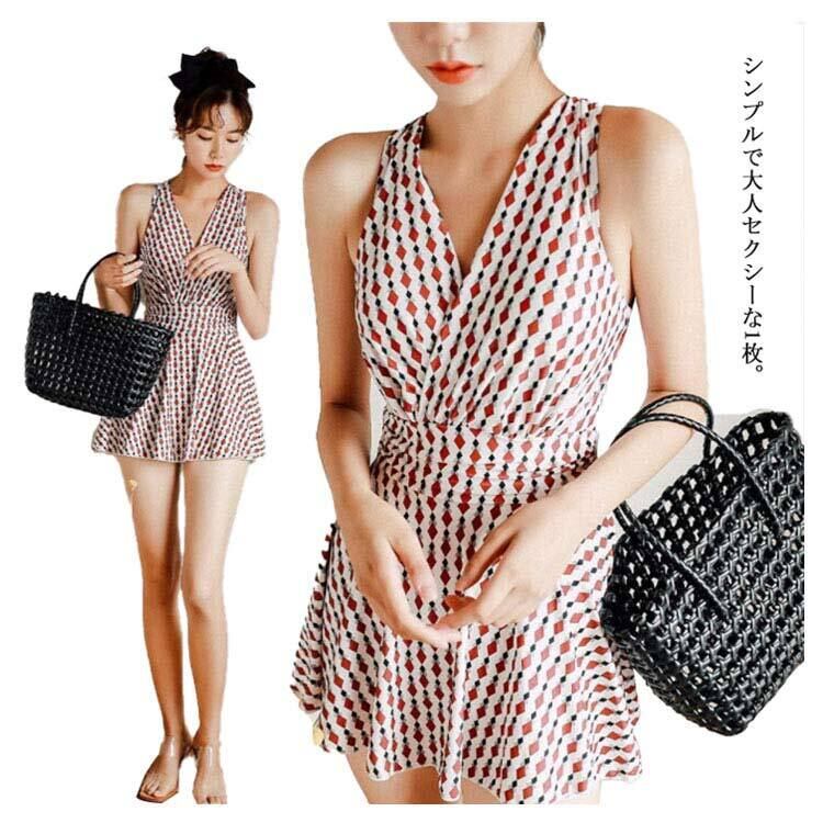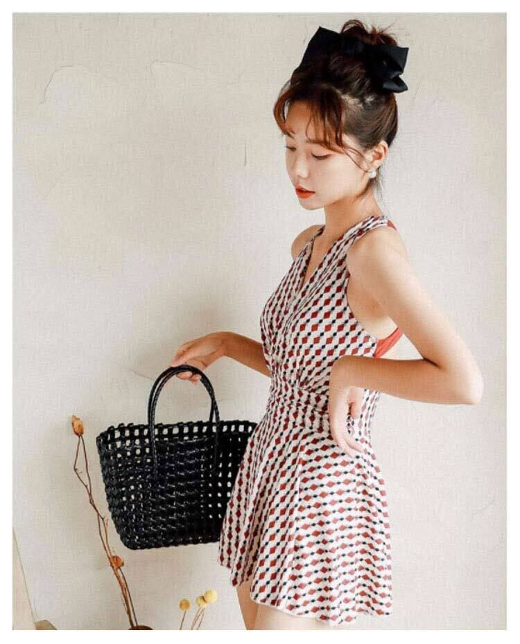 ワンピース水着 水着 レディース タンキニ レッドチェック柄 S-2XL 体型カバー バッグフリル 大人 ママ水着 韓国 ファッション コーデ おすすめ カジュアル きれいめ 大きいサイズ 人気 ゆったり 20代 30代 40代 50代