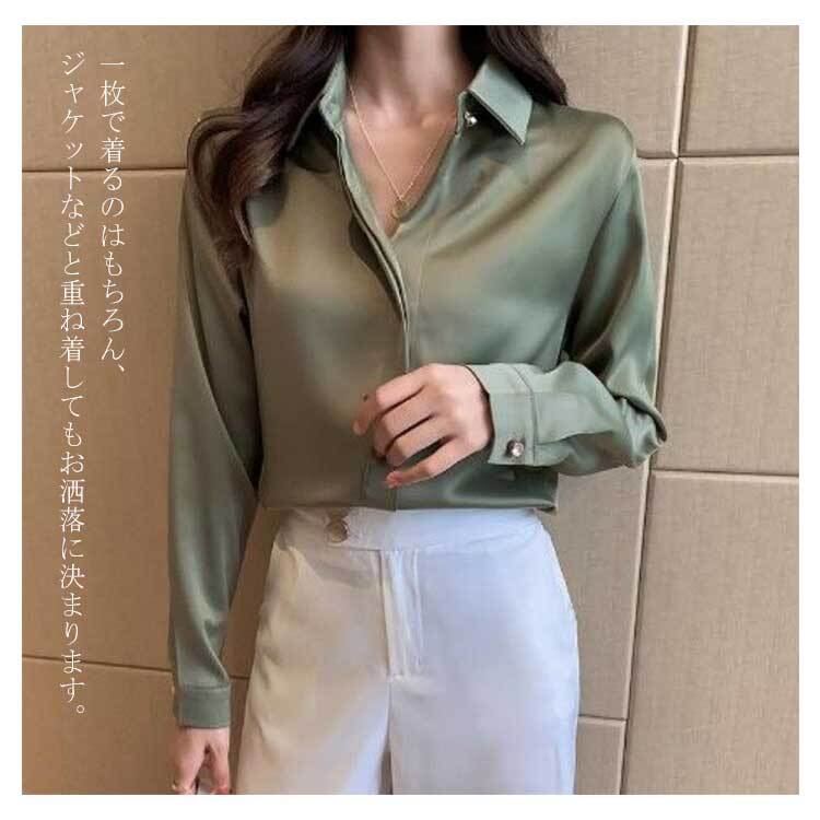 ブラウス シャツ レディース 6色 S-2XL 長袖 サテン きれいめ おしゃれ オフィス カジュアル 韓国 ファッション コーデ おすすめ カジュアル きれいめ 大きいサイズ 人気 ゆったり 20代 30代 40代 50代